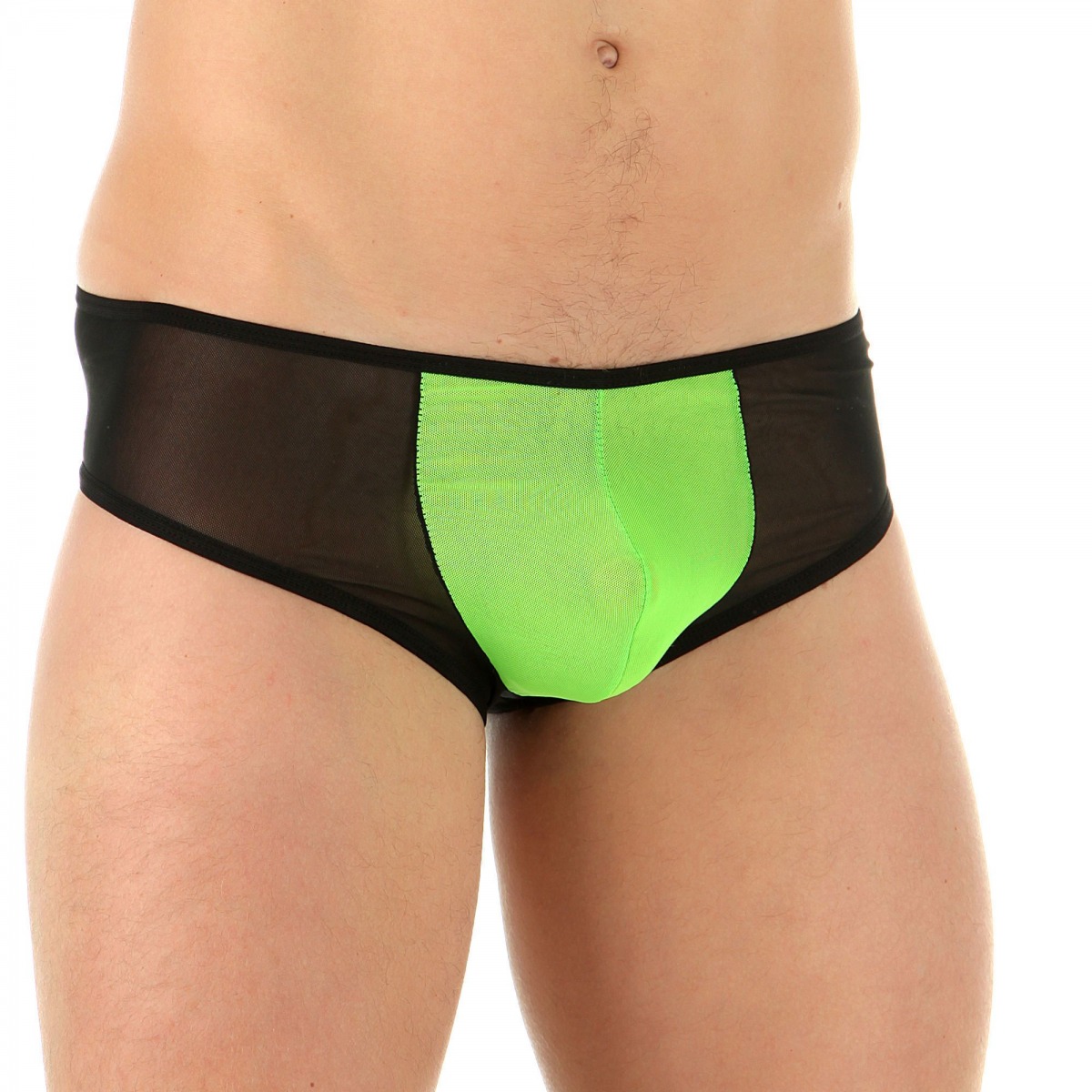 Черно-зеленые трусы-бразилиана из полупрозрачной сетки