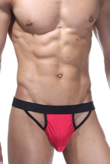 Стринги, с двумя боковыми вырезами спереди, на широкой резинке.
