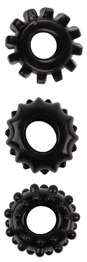 Набор из 3 черных эрекционных колец SET OF 3 COCKRINGS. Кольца имеют разную поверхность и отлично тянутся.
