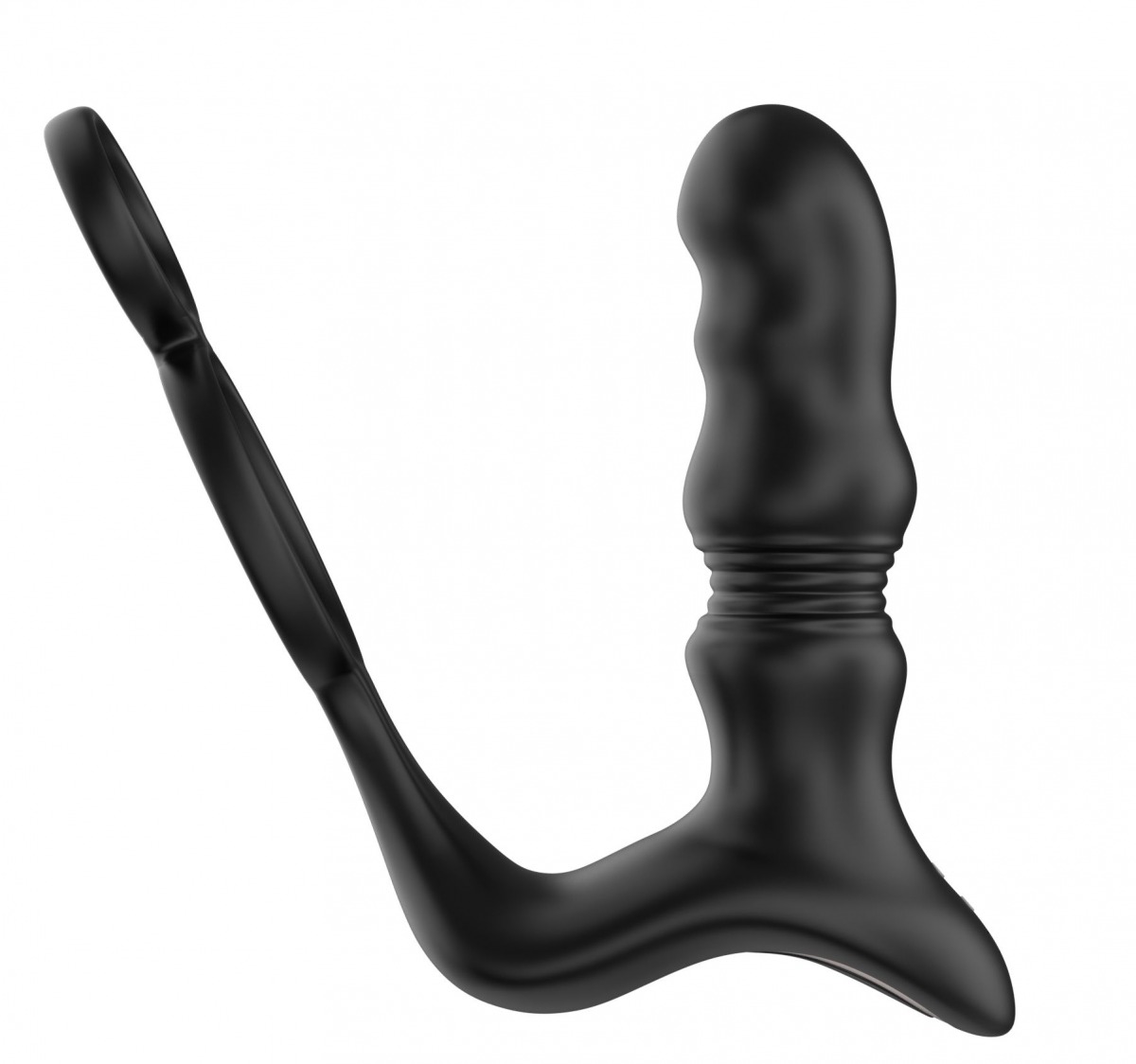 Черный вибростимулятор простаты с поступательными движениями и пультом ДУ. Оснащена 9 скоростями. Своим строением эта игрушка может одновременно стимулировать несколько зон. Пульт ДУ помогает упросить процесс переключения режимов у игрушки. Рабочая длина - 9 см.