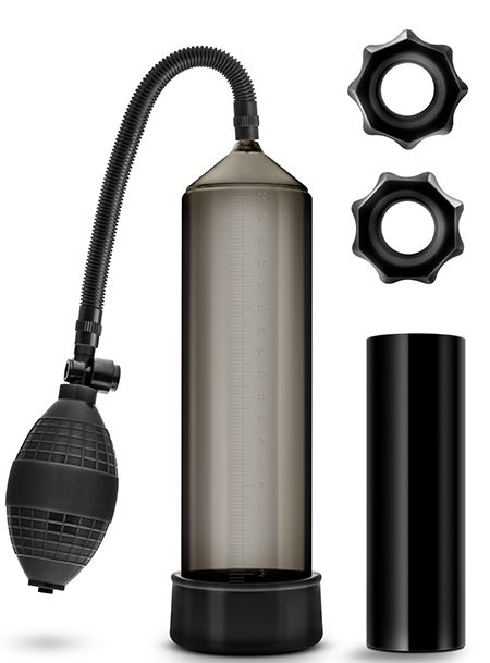 Вакуумный массажер для мужчин. Создает хорошую степень разряжения в колбе за счет удобного ручного механизма выкачивания воздуха. В комплект входят 2 эрекционных кольца одного диаметра для увеличения притока крови в момент вакуумного массажа, а также компактный мастурбатор. Длина помпы - 24 см., рабочая длина - 20 см., диаметр - 5,7 см. Длина мастурбатора - 14 см. Диаметр колец - 4,3 и 4,2 см.