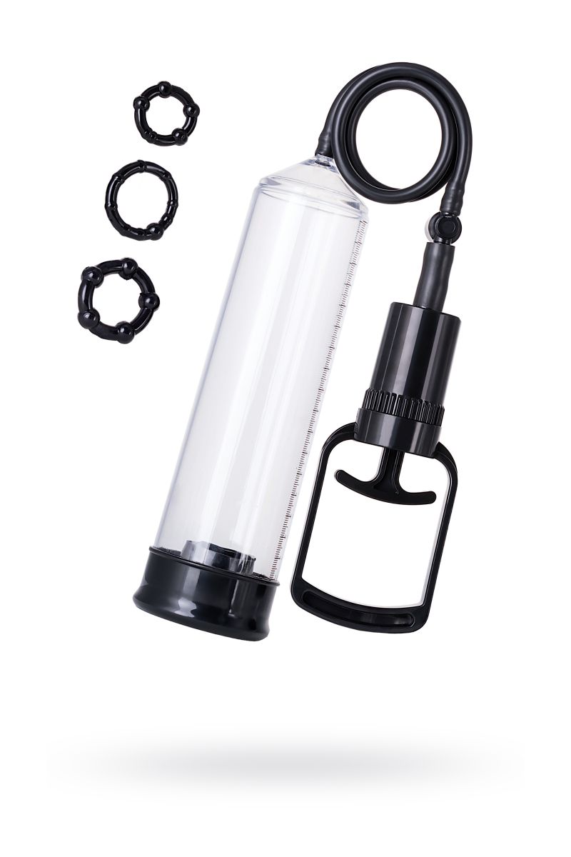 A-Toys Vacuum pump — серия помп, созданная для мужчин, которые стремятся к новым победам и точно знают чего хотя. Регулярное применение помп Atoys способствует увеличению размеров полового члена и усиливает эрекцию. Высокое качество материалов, используемых при производстве помпы, сделают применение изделия приятным и безопасным. Помпа оснащена мощным насосом. В комплекте: вакуумная помпа, 3 эрекционных кольца.