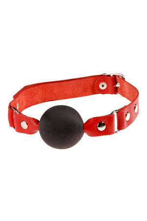 Ремешок изготовлен из натуральной кожи красного цвета. Никелированная пряжка. Шар изготовлен из латекса. Размер универсальный. Диаметр шара - 4 см.