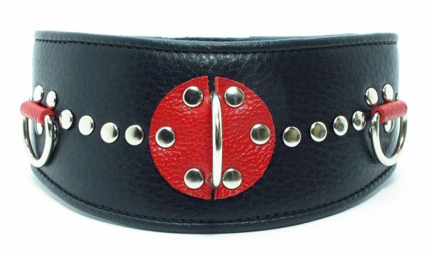 Изготовлен из натуральной кожи с металлическими заклепками. Размер универсальный. Кожаный ошейник - это один из основных атрибутов BDSM.