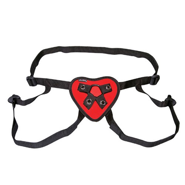 Трусики-джоки с регулирующимся с помощью пряжек размером. На красном мягком сердце - 2 кольца разного размера для крепления стимуляторов. Размер: 13-19 см.