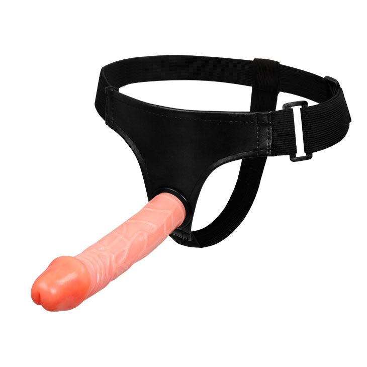 Женский страпон на ремешках с двумя насадками. Размер ремешков регулируется. Длина большого дилдо - 20 см., диаметр - 4,3 см. Длина маленького дилдо - 14,2 см., диаметр - 30 см.