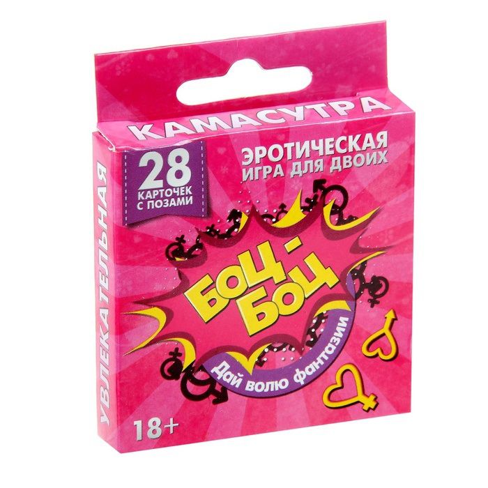 Веселая эротическая игра «Боц-боц» никого не оставит равнодушным. Играть в нее можно в одиночку или в компании, но лучше всего вдвоем, ведь картинки на сексуальную тему помогут двум влюбленным раскрепоститься или внести разнообразие в семейную жизнь. Итак, садитесь поудобнее, настраивайтесь на позитив и начинайте играть! Шаг 1.Разложите карточки в четыре ряда рубашками вверх. Шаг 2.По очереди тяните по две карточки, одну за другой. Если они совпали – забираете себе, нет – кладете обратно. Шаг 3.Когда все карточки закончатся, подсчитайте их количество у каждого игрока. У кого больше, тот и победитель! Чтобы выиграть, нужна не только удача, но и внимательность: запоминая местоположение карточек, вам будет легче вытянуть одинаковые. Игра помогает тренировать память, расширяет границы фантазии и дарит положительные эмоции!