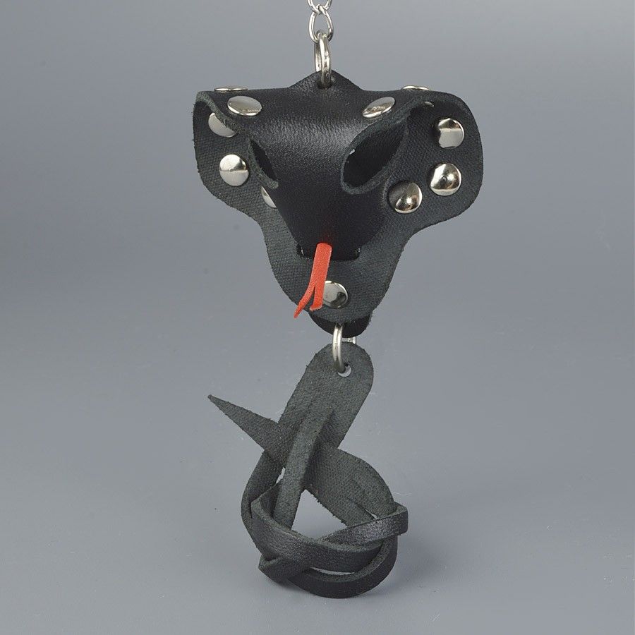 Черный кожаный брелок в форме кобры.