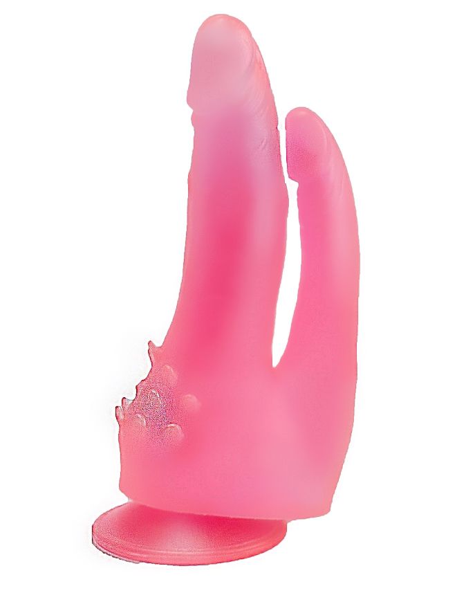 Мечтаете внести в интимную жизнь разнообразие и умножить удовольствие от секса? Этот симпатичный розовый двойной фаллоимитатор из приятного на ощупь материала с легкостью справится с такой задачей. Реалистичный и очень чувственный - один дилдо плавно входит в женское лоно, а второй аккуратно стимулирует анальное отверстие. В основании секс-игрушки есть присоска для фиксации на ровной поверхности. Диаметр анального отростка – 2,1 см.