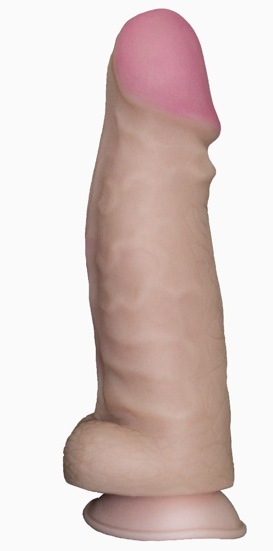 Наружная оболочка сделана из мягкого материала неоскин. Внутри каркас из более плотного, эластичного полимера. На присоске.